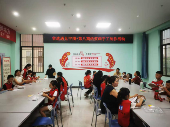 最后是纸浆画非遗手工制作环节。图书馆工作人员先介绍了纸浆画的艺术特色与创作理念,再分步指导孩子们完成制作 —— 从纸浆调配、色彩搭配到粘贴塑形,孩子们很快创作出一幅幅充满秋日气息的立秋主题作品。看着自己的成果,大家脸上都洋溢着自豪的笑容。