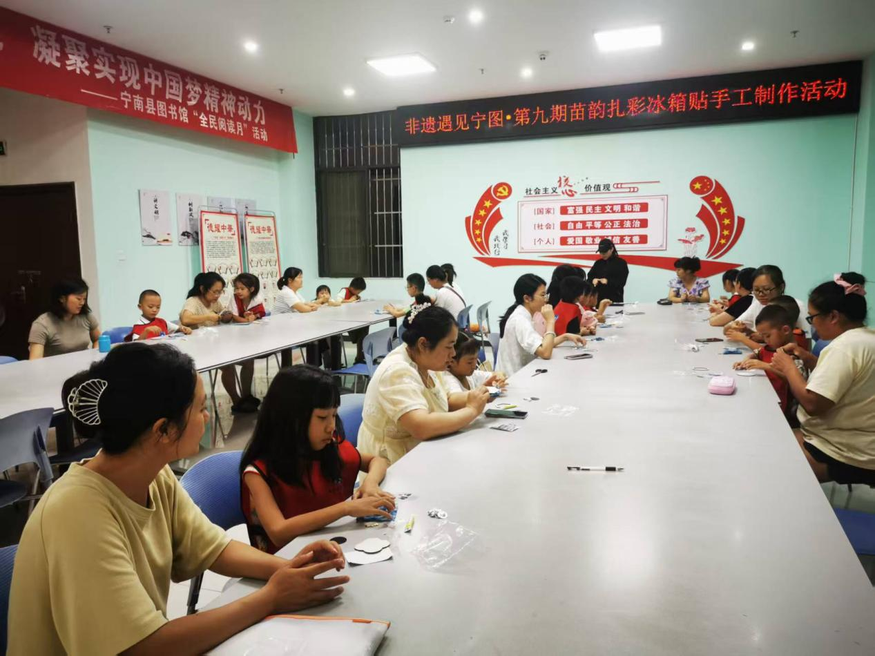 二是苗韵扎彩冰箱贴非遗手工体验 。工作人员首先向小读者介绍苗银在传统民俗中的文化意义、历史发展脉络,帮助孩子们建立对非遗工艺的基础认知;随后提供苗银材料、专用模具及制作工具,并现场示范冰箱贴的完整制作步骤,引导小读者亲手参与创作,在实践中感受苗银工艺的独特魅力,近距离触摸非遗文化。