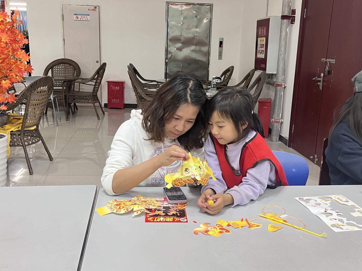 绘本分享结束后,迎来了本次活动的马年非遗灯笼手工制作。老师先向孩子们介绍了灯笼作为非遗文化的传承价值,以及马年主题灯笼的设计巧思,随后细致演示了灯笼制作的每一个步骤,从骨架搭建、纸面粘贴,到装饰点缀、挂绳固定,耐心解答孩子们的疑问,指导大家处理制作中的细节问题。家长与孩子默契配合,小手牵大手共同动手,折、粘、剪、贴有条不紊,在欢声笑语中,一个个造型别致、充满年味的马年非遗灯笼逐渐成型,孩子们看着自己的作品,脸上满是自豪与喜悦。