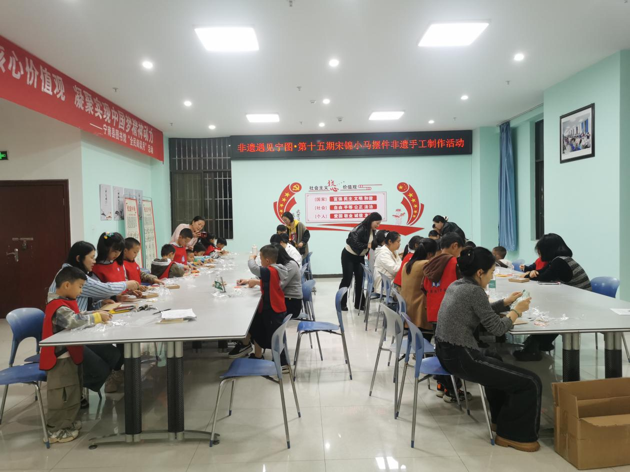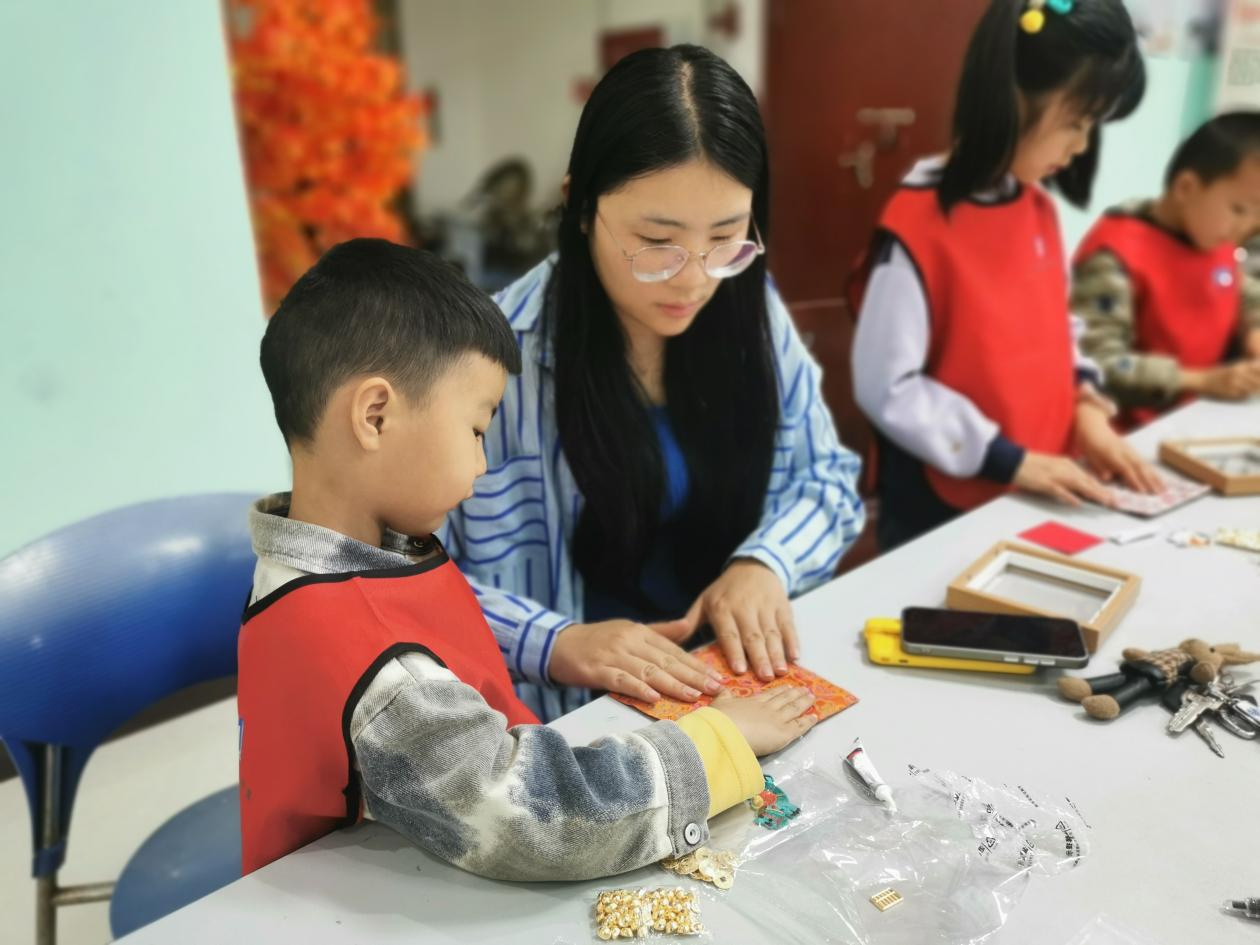 随后的非遗体验环节,蒙蒙老师为亲子家庭讲解了宋锦这一国家级非物质文化遗产的历史渊源与工艺特色。家长与孩子们共同动手制作“宋锦小马非遗织锦相框摆件”,在穿线、粘贴、装框的过程中,感受传统织锦的纹理之美和匠心精神。现场亲子协作氛围浓厚,孩子们在实践中收获成就感,在书香中汲取传统文化的养分。
